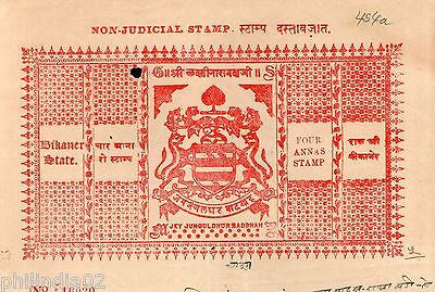 India Fiscal Bikaner State 4As Non Judicial Stamp Paper Type45 KM454 # 10504C