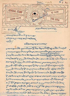 India Fiscal Chhatarpur State 2As Coat of Arms Stamp Paper Type 4 KM 42 # 10605C