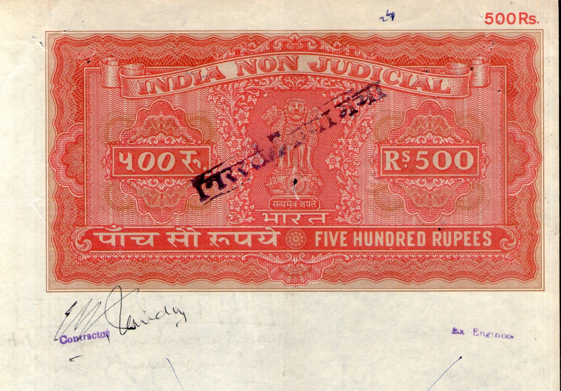 India Fiscal Rs.500 Ashokan Stamp Paper Court Fee Revenue WMK-17 Good Used # 86J