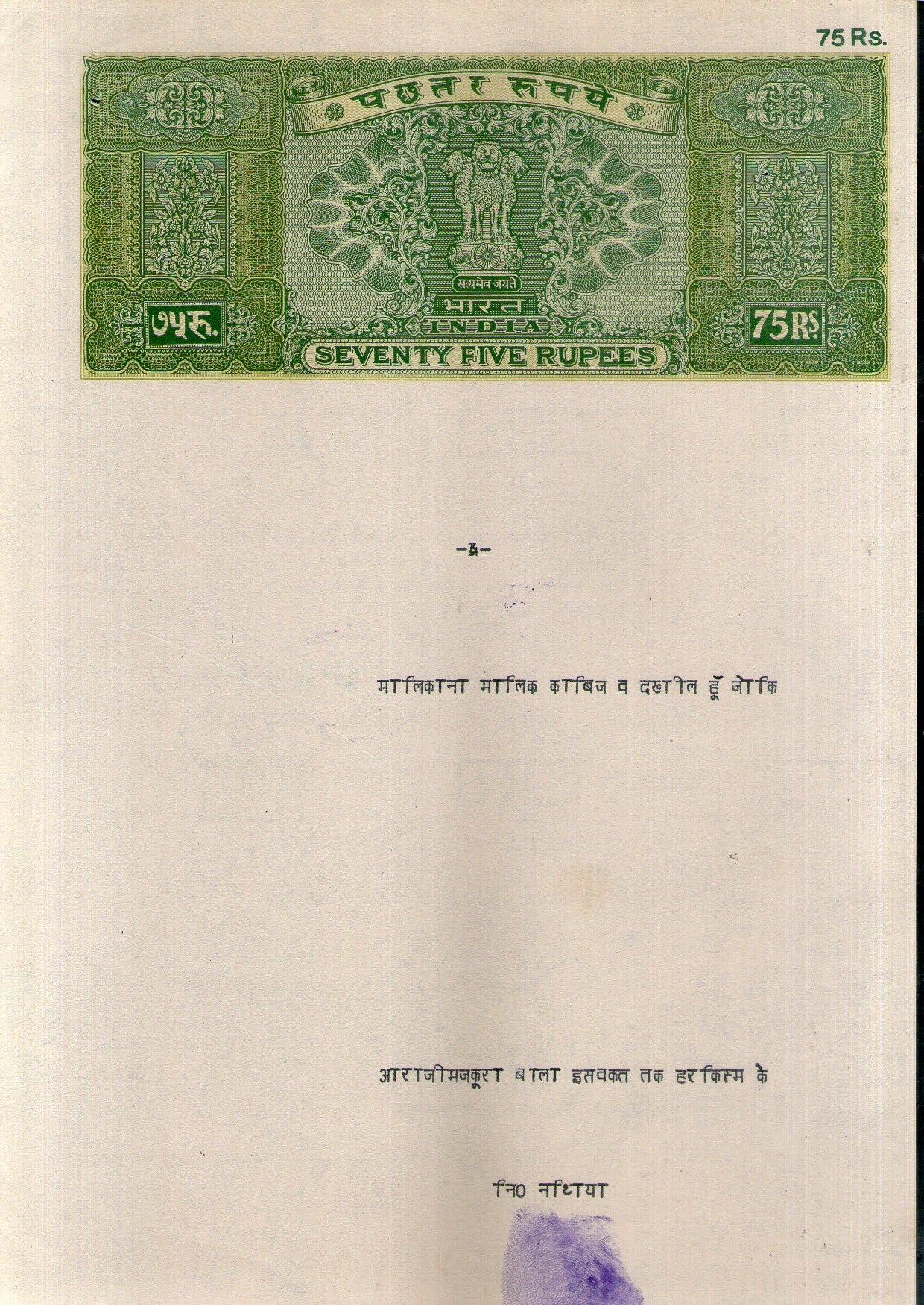 India Fiscal Rs. 75 Ashokan Stamp Paper Court Fee Revenue WMK-17 Good Used # 119