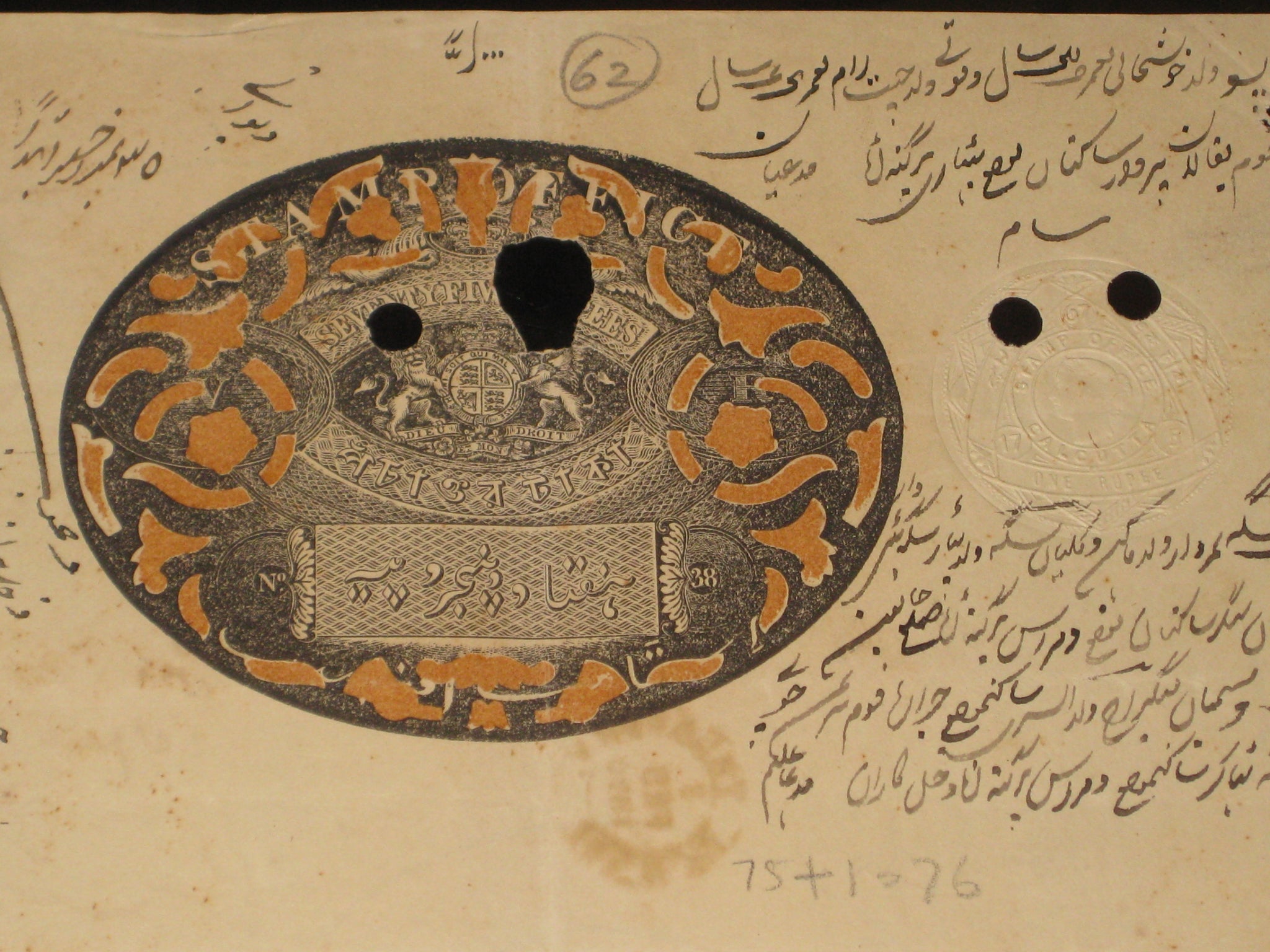 India Fiscal Rs. 75 Congreve Type 13 + Re. 1 QV Effigy Type 7 Stamp Paper # B062