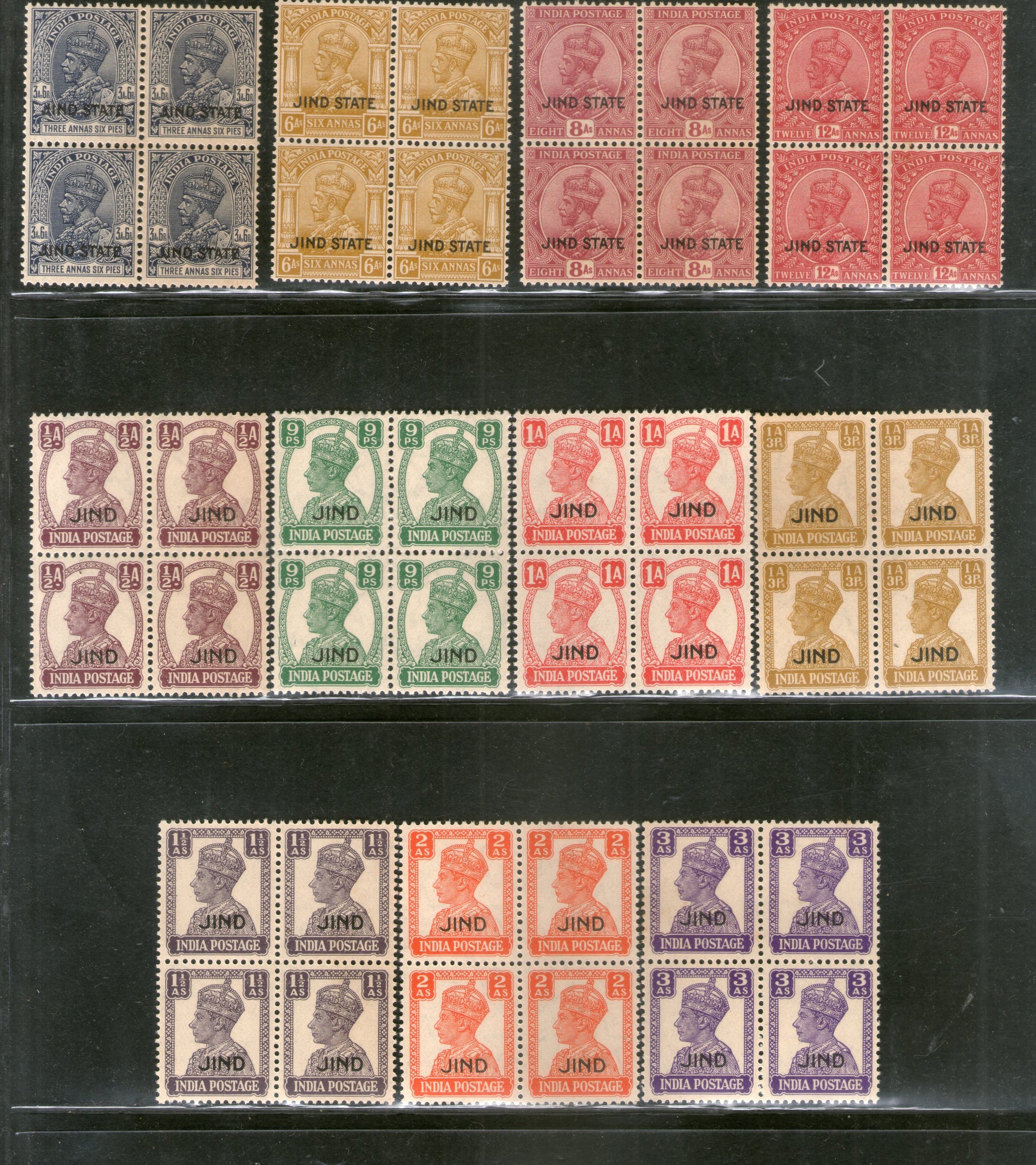 India Jind State 11 Diff. KG V/KG VI Postage and Service Stamps BLK/4 Cat. £325+ MNH # 5798