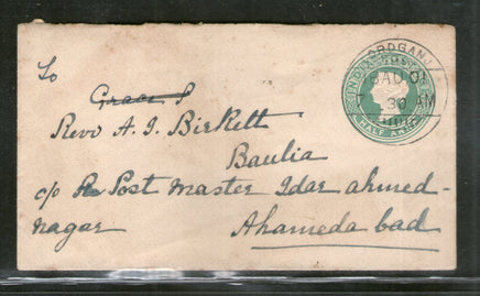 India QV ½An Green Psenv with Lordganj canc. to Ahmed Nagar / Mahikanta  # 24
