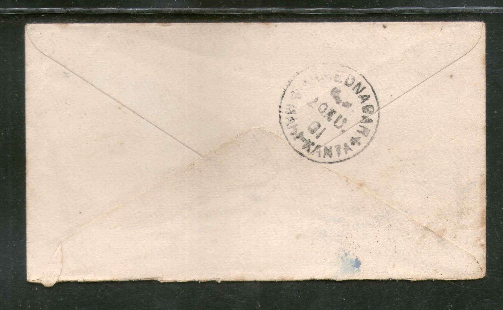India QV ½An Green Psenv with Lordganj canc. to Ahmed Nagar / Mahikanta # 24
