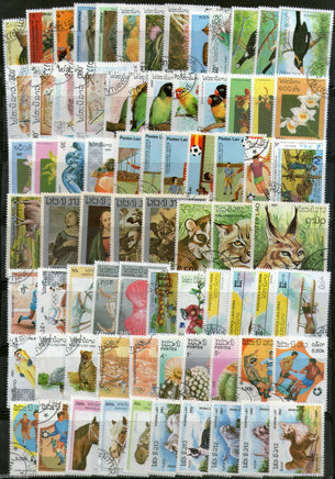 Laos 115 Diff. Used Stamps on Painting Wildlife Animals Sports Olympics Birds Fish Flora Fauna