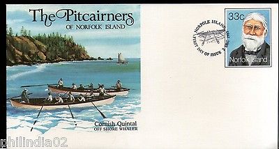 Norfolk Is. Cornish Quintal Off Shore Whaler Postal Stationery Env. FD Cancelled