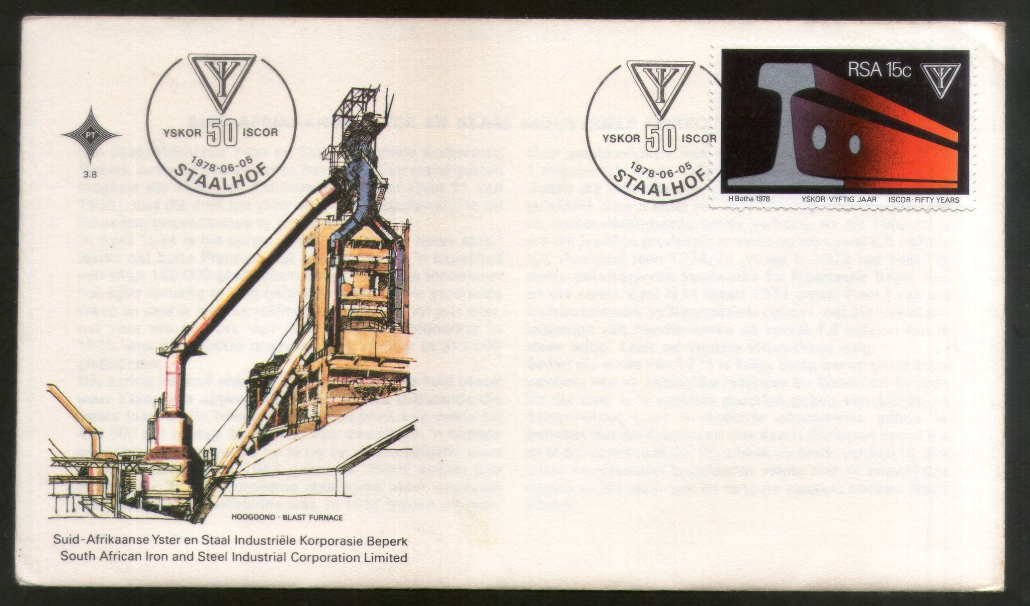 South Africa 1978 ISCOR Iron & Steel Industrial Corporation Machine FDC #16505