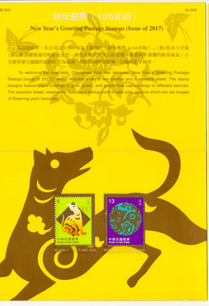 Taiwan Rep. of China 2017 Chinese New Year of Dog 2v MNH Presentation Folder # 7797