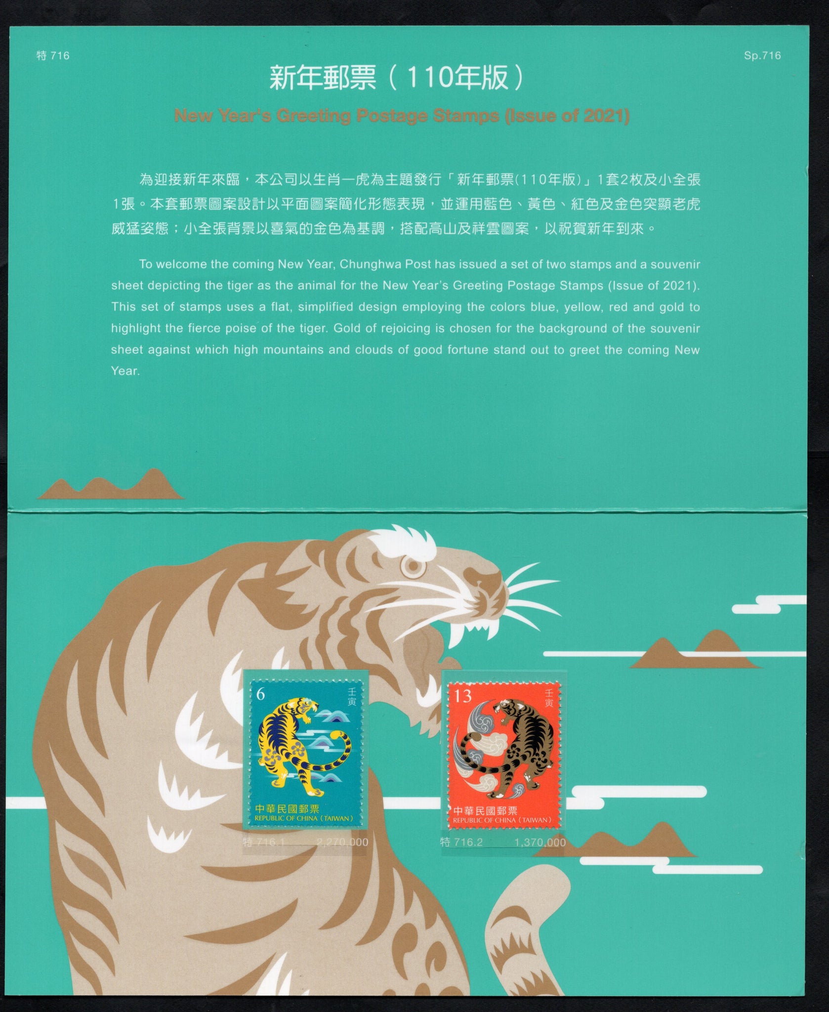 Taiwan Rep. of China 2021 Chinese New Year of Tiger 2v MNH Presentation Folder # 9005