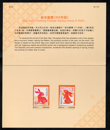 Taiwan Rep. of China 2022 Chinese New Year of Rabbit 2v MNH Presentation Folder # 9027