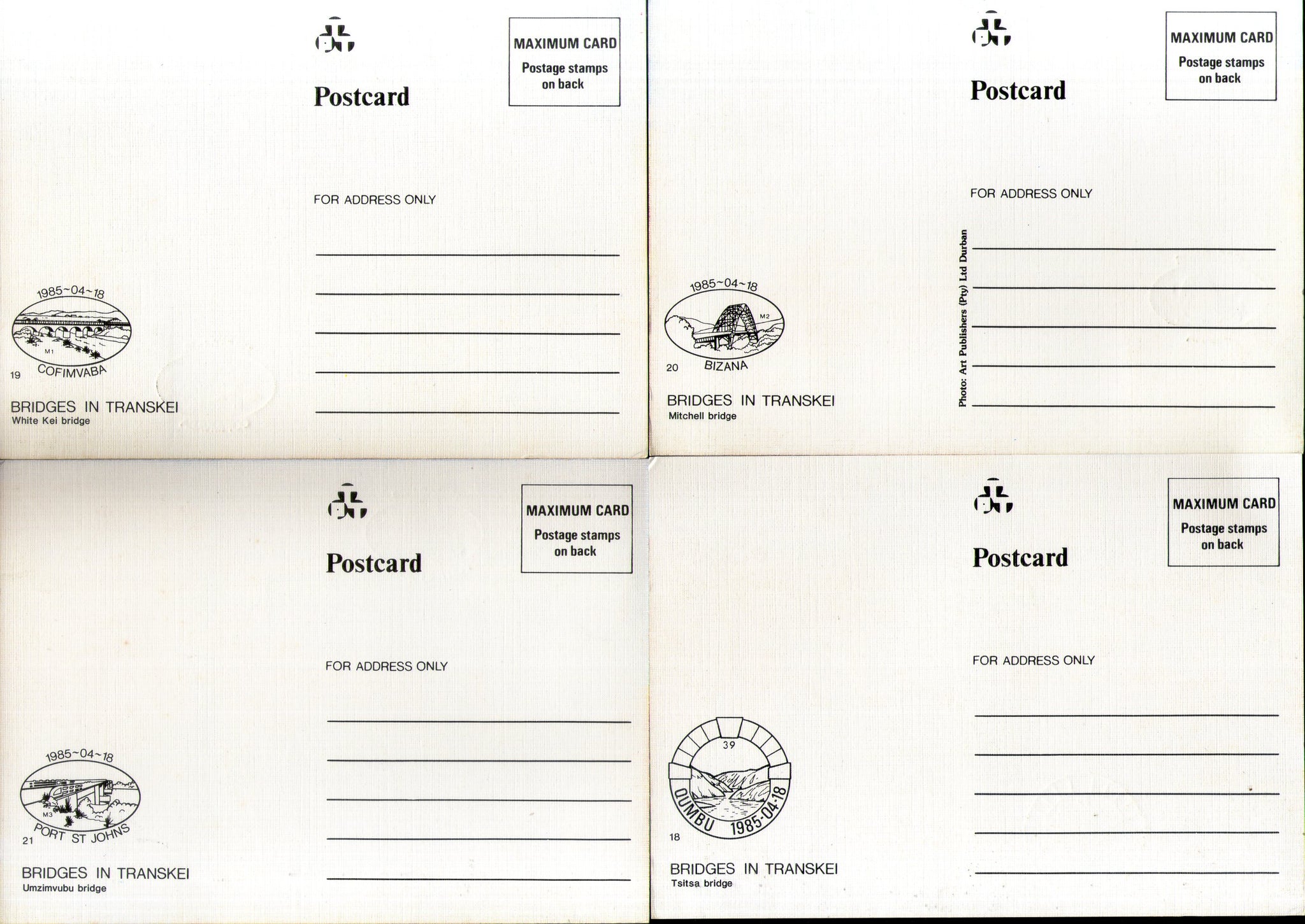 Transkei 1985 Bridges Architecture River Mountain Sc 159-62 Max Cards # 16539