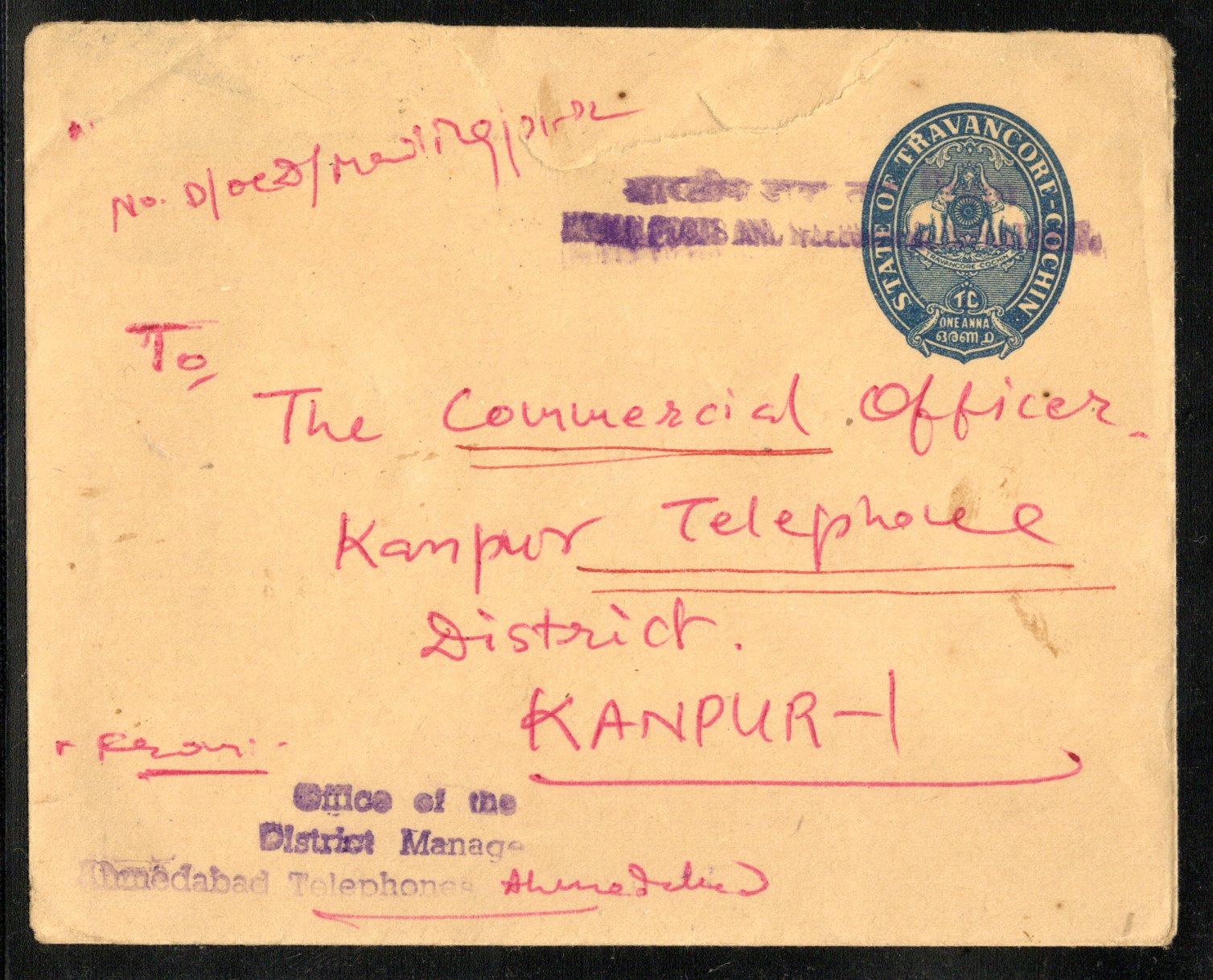 Travancore – Cochin State 1972 1An Elephant Postal Stationery Envelope P& T Used # 5308