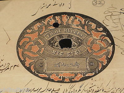 India Fiscal 8 Rs. Congreve Stamp Paper Type 13 Die-39 Coat of Arms # B032