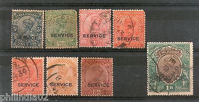 India 1912-31 King George V 8 Diff Used Service Stamps Watermark Unchecked #2939