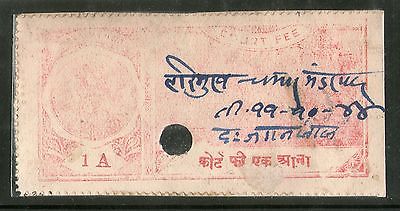 India Fiscal Karauli State 1 An King Type 20 KM 323 Revenue Stamp # 1159