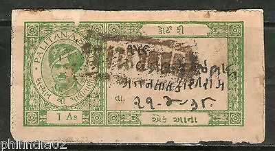 India Fiscal Palitana State 1An Green Type 9 KM 91 Court Fee Stamp Used # 4164E