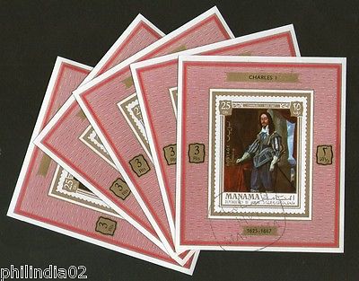 Manama - Ajman Charles I of England monarch Portrait iPainting M/s Cancelled x 5