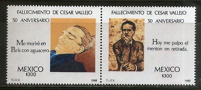 Mexico 1988 Cesar Vallejo Poet Portrait Painting Se Tenant MNH # 4215