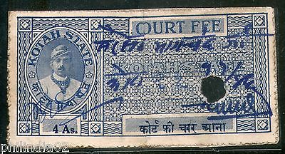 India Fiscal Kotah State 4 As King Type 30 KM 302 Court Fee Revenue Stamp # 3724