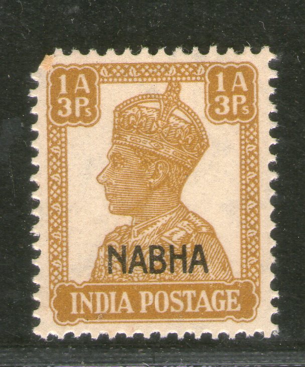 India Nabha State 1An 3ps KG VI Postage Stamp SG 109 / Sc 104 MNH # 240