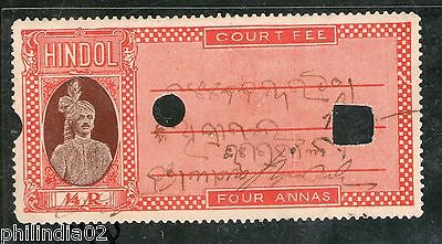 India Fiscal Hindol State 4As Type 12 KM 123 Court Fee Stamp Revenue # 4062C