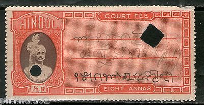 India Fiscal Hindol State 8As Type 12 KM 124 Court Fee Stamp Revenue # 4069A