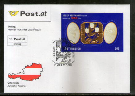 Austria 2007 Josef Hoffmann Neckless Sc 2117 Gold Foil Embossed Exotic Stamp FDC # 8476