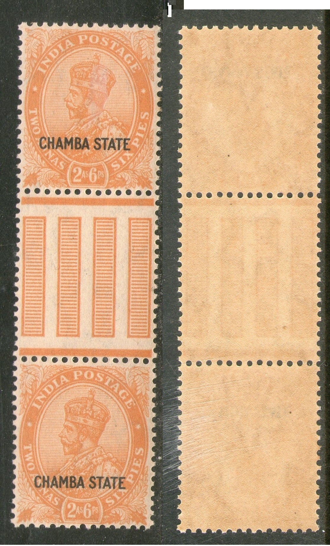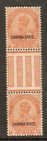 India CHAMBA State 2½As Postage KG V SG 69 / Sc 66 Vertical Gutter Pair MNH