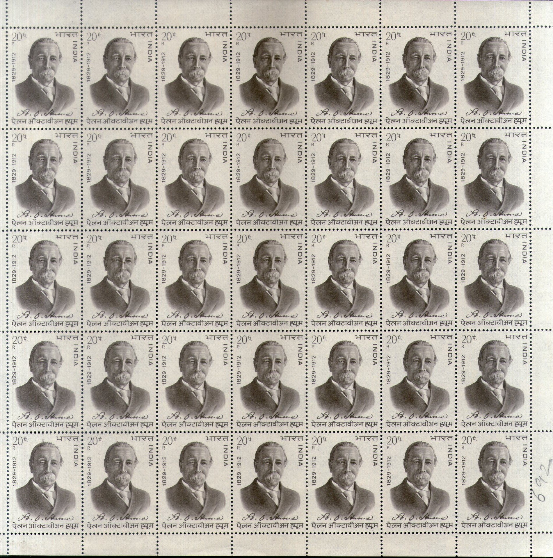 India 1973 A.O. Hume Phila 584 Full Sheet of 35 Stamps MNH # 71