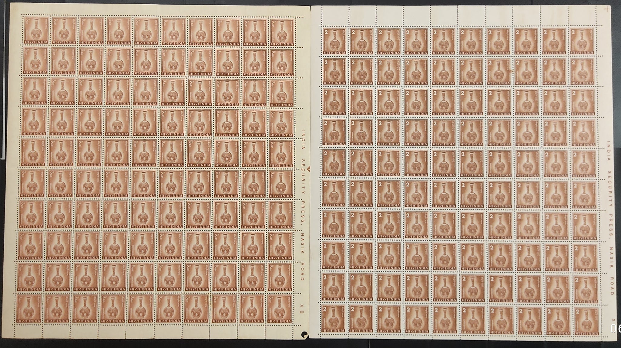 India 1967-79 4th & 5th Definitive Series - 2p Bidriware WMK-Ashokan & Star Phila-D70 & 97 2 diff full sheets MNH # 135Sheet Condition as per Scan