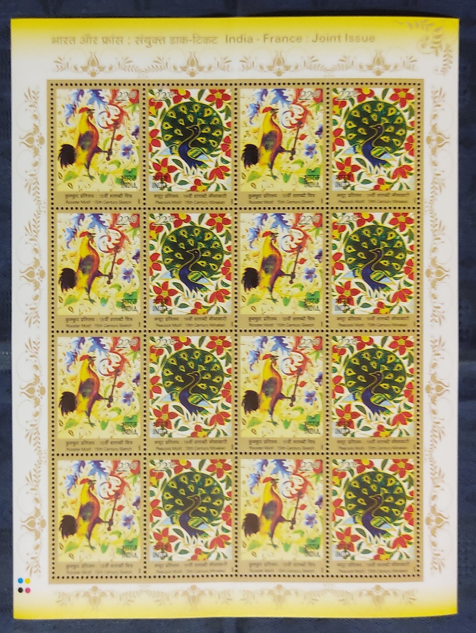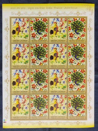 India 2003 France Joints Issue Art & Craft Peacock Phila-2019 Sheetlet / Full Sheet MNH
