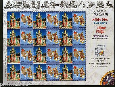 India 2011 My Stamp Sun Sign Pisces Diskit Monastery Buddhist Site Sheetlet MNH