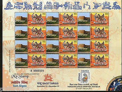 India 2011 My Stamp Sun Sign Sagittarius Bahu Fort Jammu Architect Sheetlet MNH