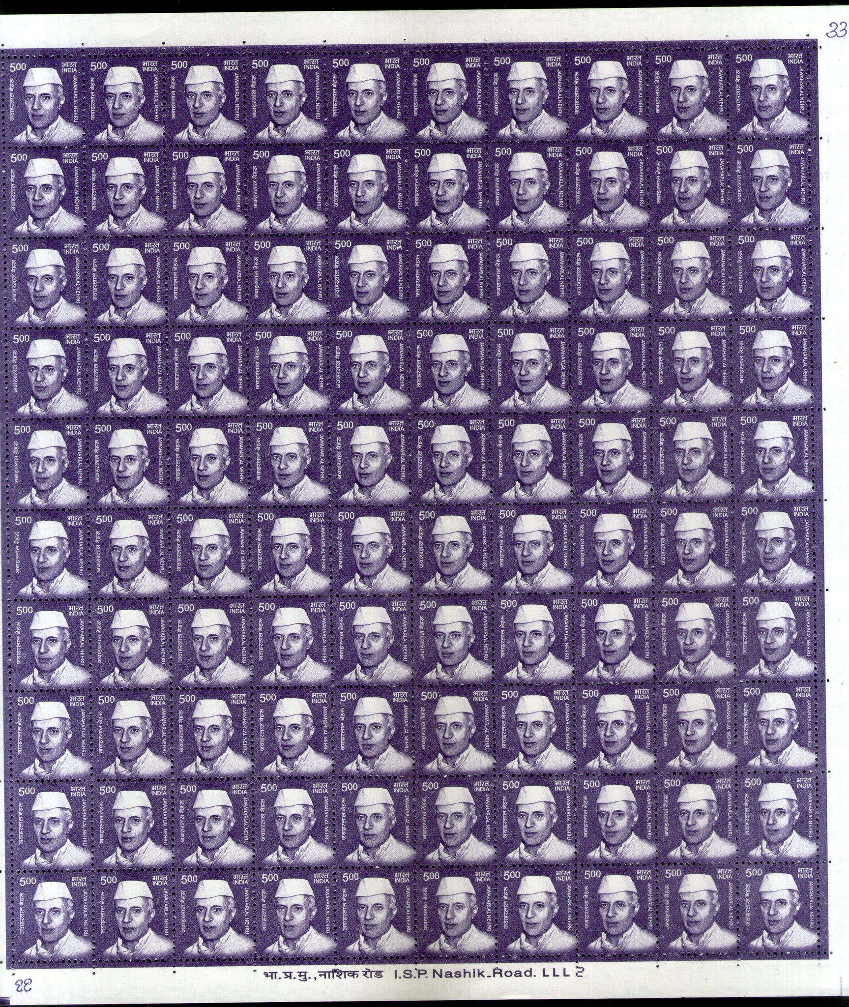 India 2015-19 11th Def. Series Makers of India 500p Jawaharlal Nehru Phila D208 Full Sheet of 100 MNH