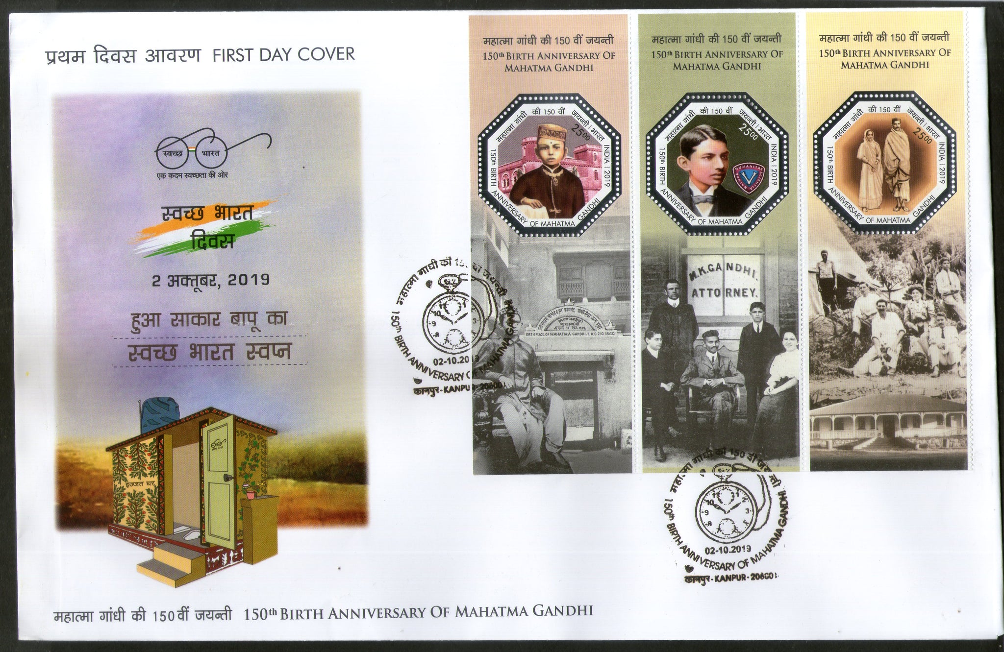 India 2019 Mahatma Gandhi 150th Birth Anni. Octagonal Odd Shaped Stamps M/s on FDC