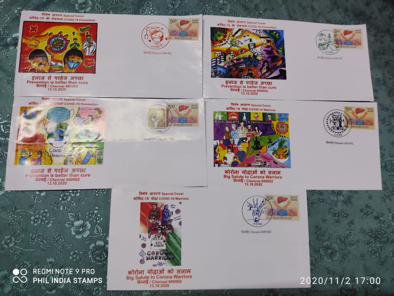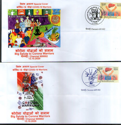 India 2020 Big Salute to Corona Warriors COVID-19 Health Set of 5 Special Covers # 6902