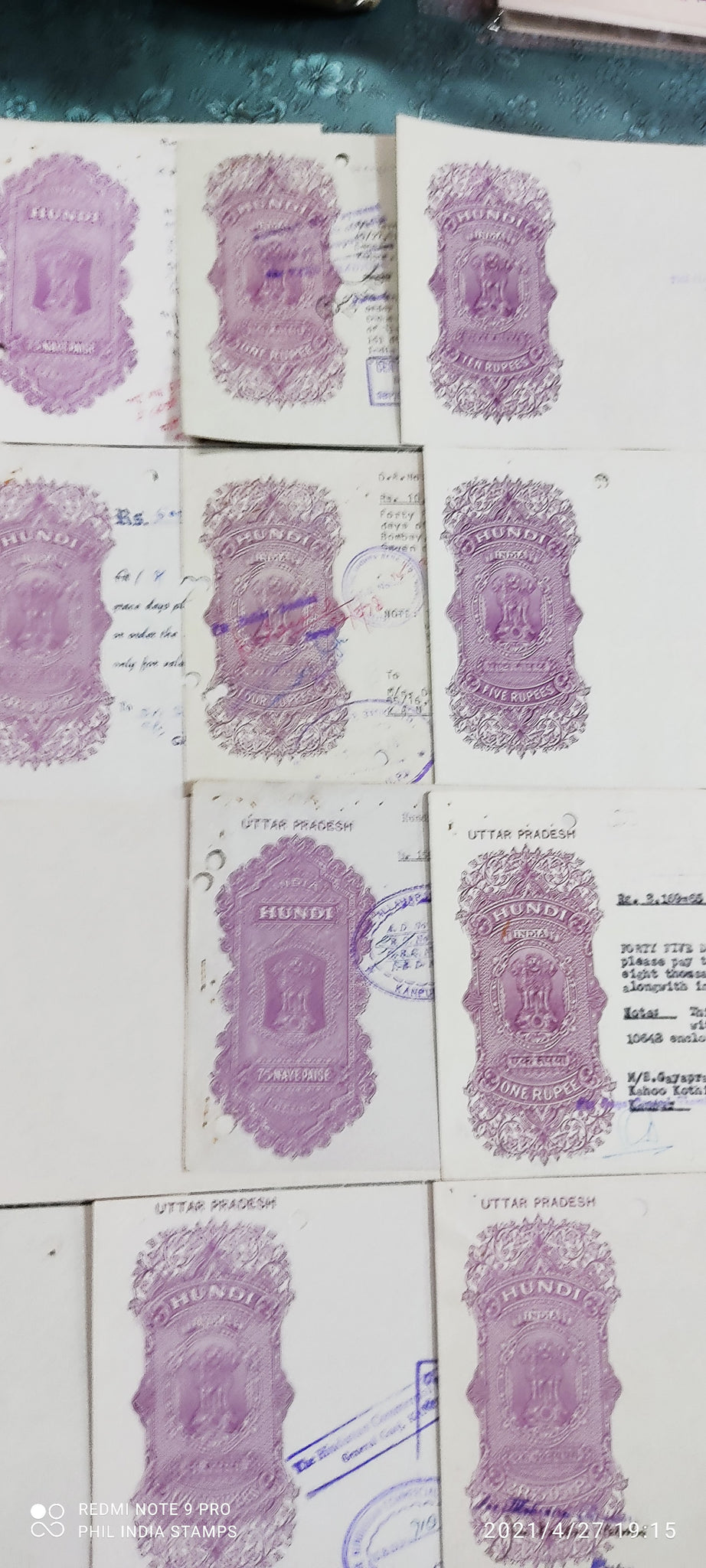 India Fiscal 37 Diff. Hundi up to Rs 10 Inc. Diff Types WMKS & States Issues Used # 9572