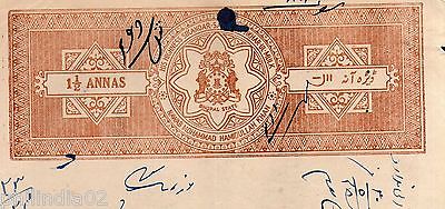 India Fiscal BHOPAL 1½ An STAMP PAPER Type 55 KM 553 Revenue Court Fee # 10470A