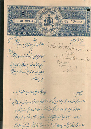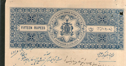 India Fiscal Bhopal State Rs.15 Stamp Paper Type 40 Revenue Court Fee # 10429