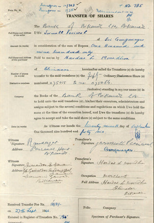 India Fiscal Bikaner State 2 Diff Revenue on Share Transfer Document T60 # 10061A