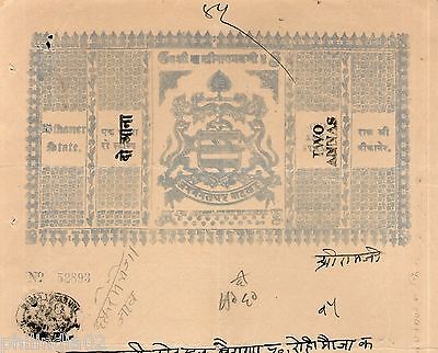 India Fiscal Bikaner State 2As O/P on 1 An Stamp Paper Type 75 KM 772 # 10226D