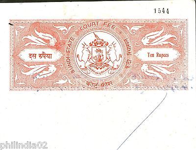 India Fiscal Bundi State 10 Rs. Crest Stamp Paper Type7 KM 80 Court Fee # 10933G