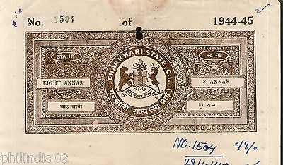 India Fiscal Charkhari State 8As Coat of Arms Stamp Paper Type10 KM 106 # 10346A
