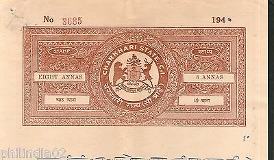India Fiscal Charkhari State 8As Coat of Arms Stamp Paper Type10 KM 106 # 10346B