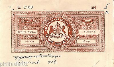 India Fiscal Charkhari State 8As Coat of Arms Stamp Paper Type10 KM 106 # 10346D