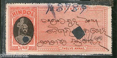 India Fiscal Hindol State 12As Type 12 KM 125 Court Fee Stamp Revenue # 4107E