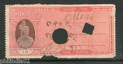 India Fiscal Hindol State Re. 1 Type 12 KM 126 Court Fee Stamp Revenue # 4008C