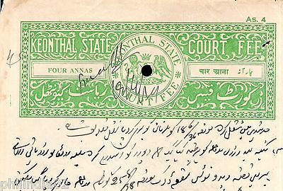 India Fiscal Keonthal State 4As Stamp Paper T8 KM83 Court Fee Revenue # B553B-03