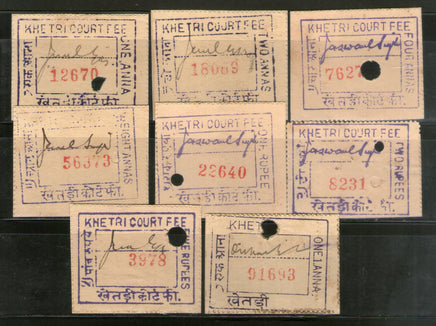 India Fiscal Khetri State 8 Diff. Court Fee Type 5 & 30 Revenue Stamp # 1226