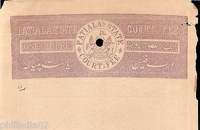 India Fiscal Patiala State 1Re Blank Stamp Paper Type10 KM108 Court Fee # 10836G